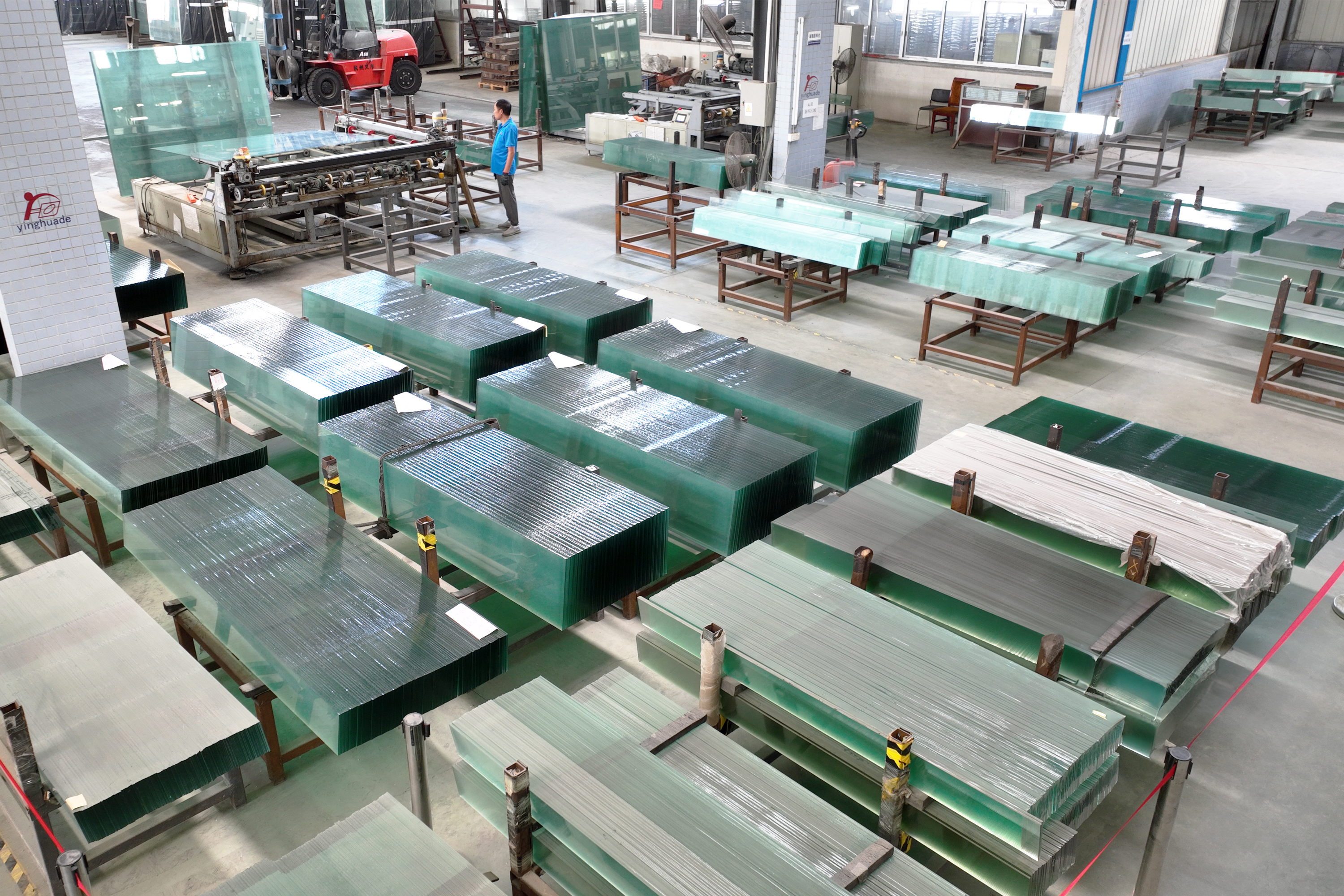 Machines handle the glass with great care.